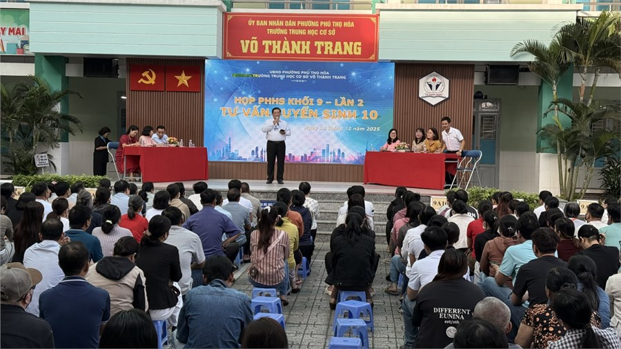 Để phát huy tốt vai trò phối hợp giữa Nhà trường và Gia đình trong việc đôn đốc nhắc nhở HS ôn tập chuẩn bị thật tốt cho kỳ kiểm tra cuối HK1 và chuẩn bị tâm thế tốt nhất cho kỳ thi Tuyển sinh vào lớp 10, sáng chủ nhật, ngày 14/12/2025, trường THCS Võ Thành Trang đã tổ chức buổi họp CMHS khối 9 lần 2. Buổi họp gồm 2 phần: