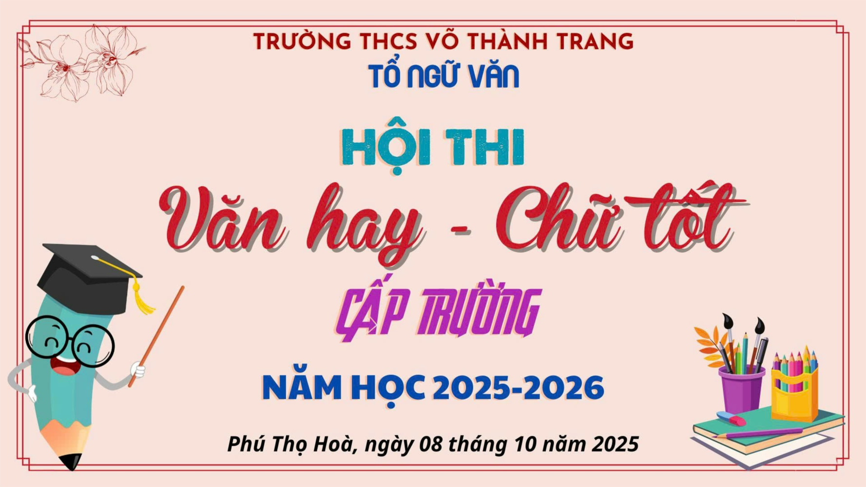 Thực hiện kế hoạch năm học, sau thời gian tổ chức vòng sơ khảo, sáng thứ tư, ngày 08/10/2025, Tổ Ngữ văn trường THCS Võ Thành Trang đã tổ chức cho 30 HS thi “Văn hay Chữ tốt” cấp trường. Hội thi diễn ra gồm 2 phần:
